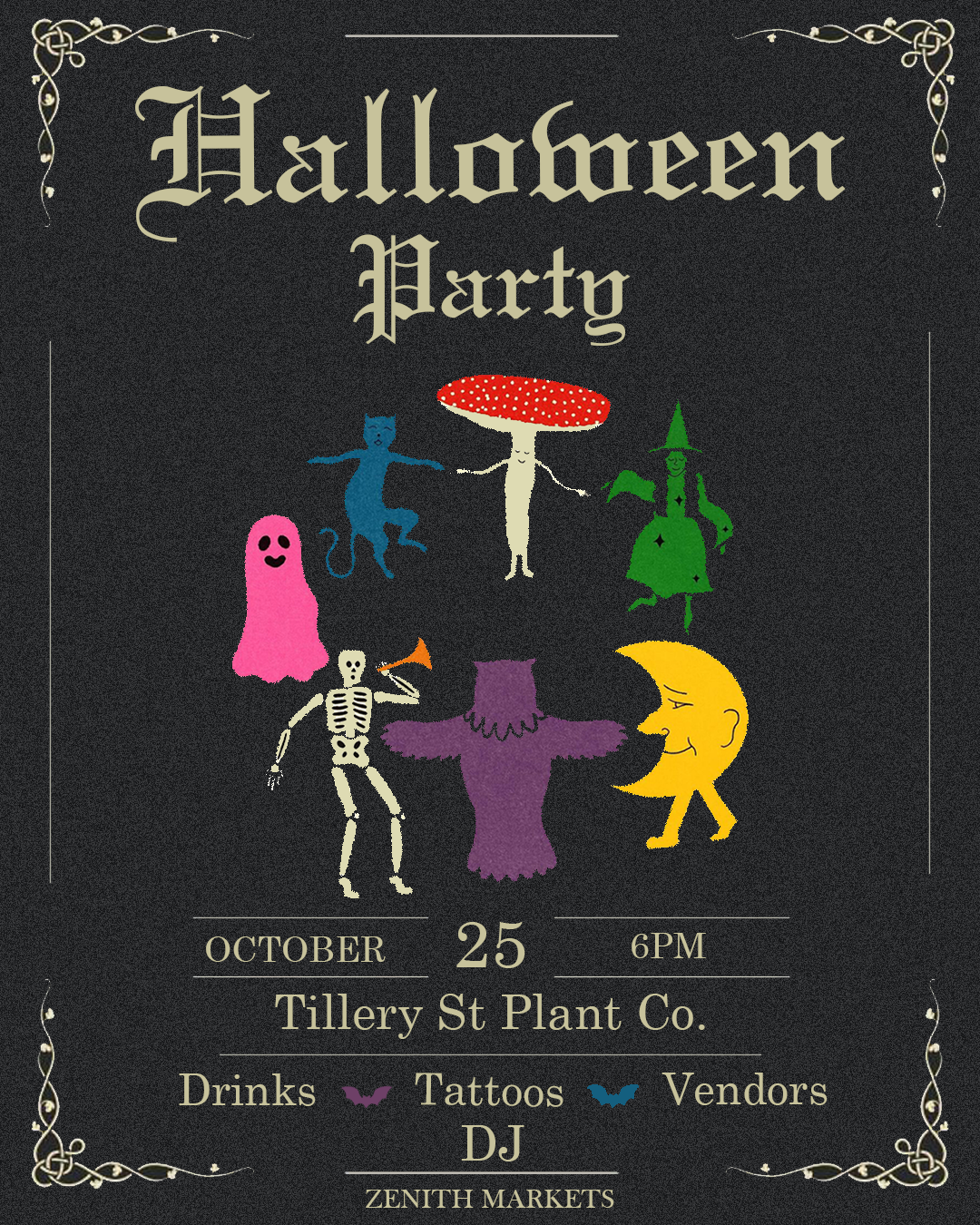 Join us for our Tillery St Plant Co Market on October 24th from 6–10PM. An evening of music and art featuring free drinks, tattoos, a live DJ and more. Come explore, connect, and celebrate with us. RSVP below to save your spot!